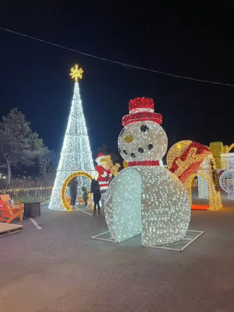 Giant Snowman Sculpture and Winter Light Park Installations for Outdoor Christmas Events A Warm Welcome to a Winter Fantasy Holiday attractions come alive when illuminated sculptures are combined with thoughtful spatial design. In this enchanting scene, a towering walk-through snowman creates a gateway into a vibrant Christmas world. Its glowing structure, bright red hat, and […]