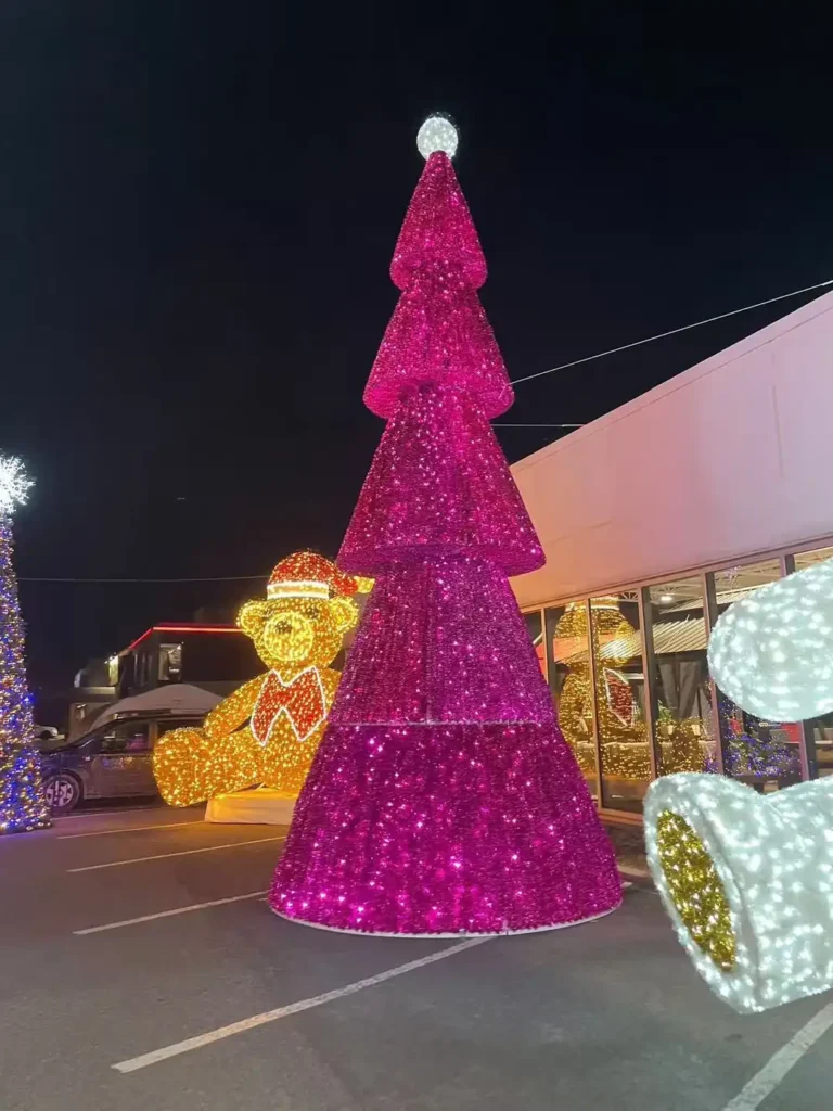 Modern Pink Christmas Tree for Outdoor Holiday Displays 1. A Modern Pink Christmas Tree for Striking Holiday Displays This vibrant modern pink Christmas tree brings a unique and eye-catching style to outdoor holiday decorations. With its bold color, layered cone structure, and sparkling surface, it stands out immediately among traditional festive displays. The rounded ornament […]