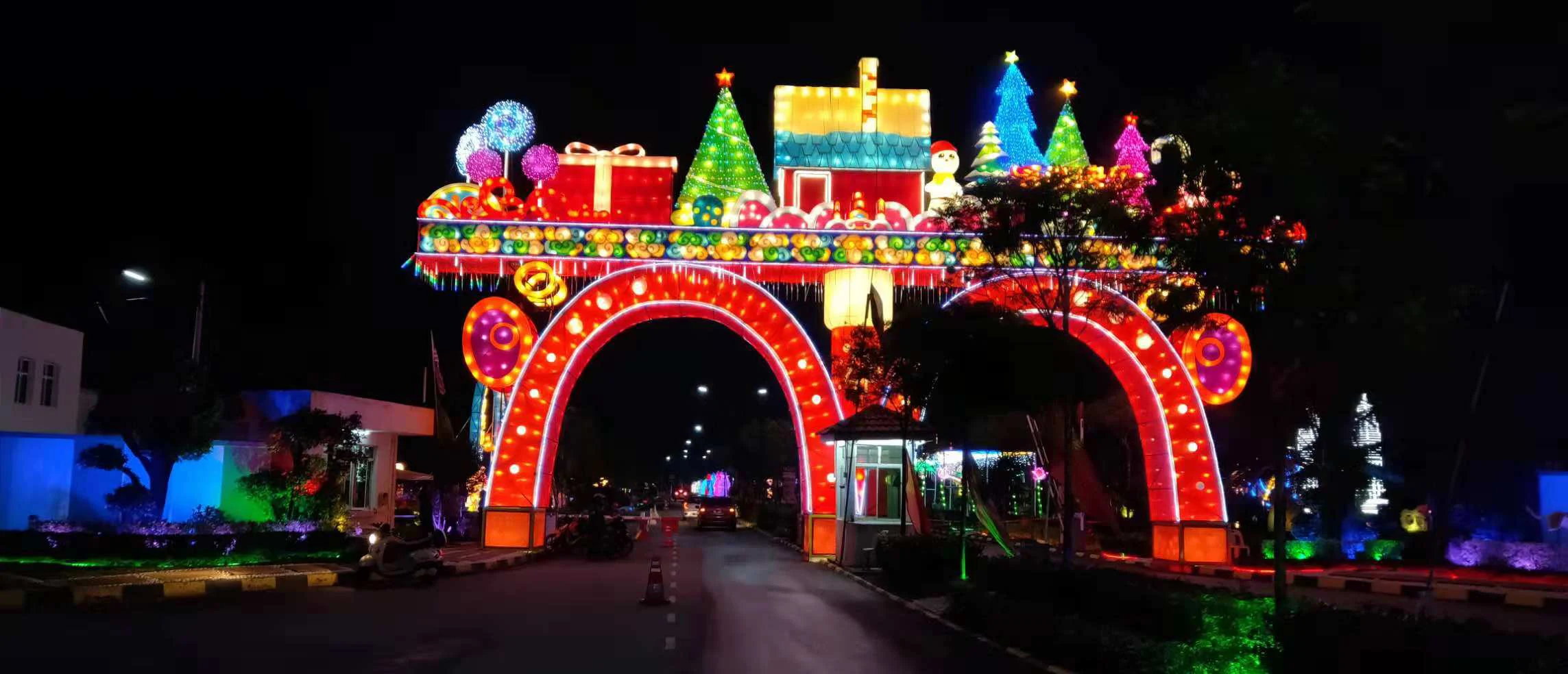 One of the standout features of this custom project is the Christmas arch, which catches the eye of every passerby. The arch design blends Christmas trees, gifts, candy, and multicolored lights, creating a truly festive atmosphere. As night falls, the lights on the arch illuminate, and the colorful light bands bring festive energy to the entire street.