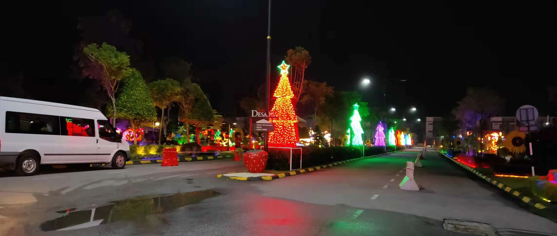 This project stands out due to its custom design that blends tropical elements with traditional Christmas themes. The lighting installations feature vibrant colors and unique designs such as Christmas trees, arches, and decorative lighting that reflect Malaysia’s tropical charm while embracing the festive atmosphere.