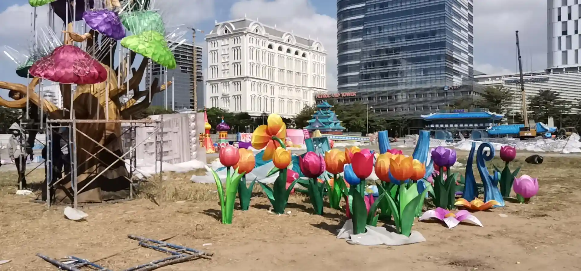 The main challenge of this Vietnam lantern project was not the production of individual structures, but the integration of multiple themes into one coordinated system.