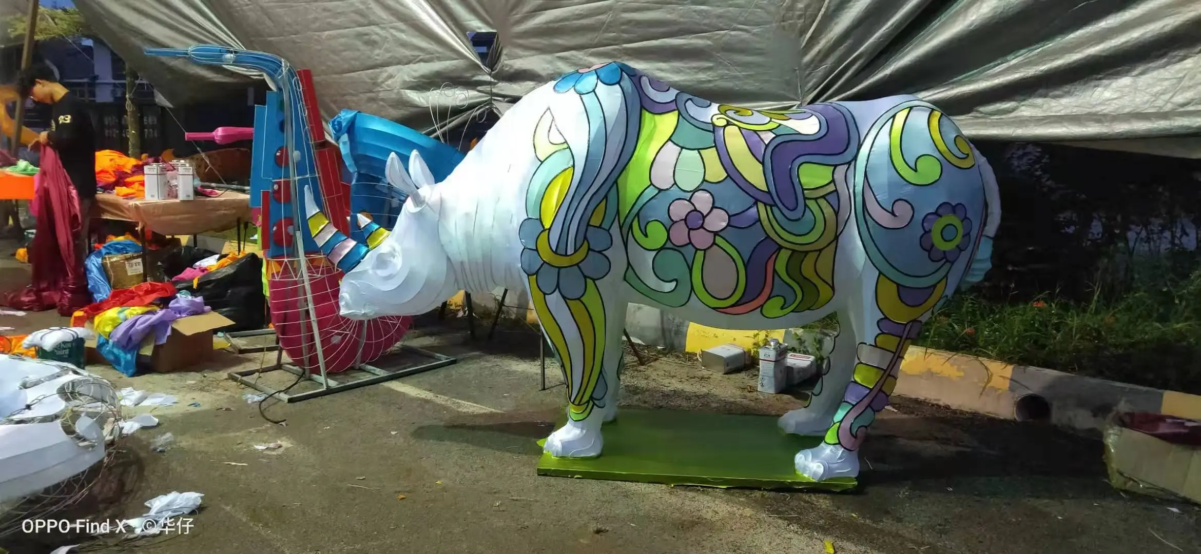 - a custom painted rhinoceros lantern