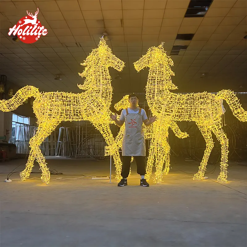 Experience the stunning glow of our Outdoor LED Christmas Horse Light Sculpture in action. This video showcases its bright illumination, elegant 3D metal frame, and impressive night-time visual effect. Designed for outdoor holiday displays, it delivers strong brightness, stable performance, and reliable IP65 waterproof protection—perfect for parks, malls, yards, and festive commercial installations.