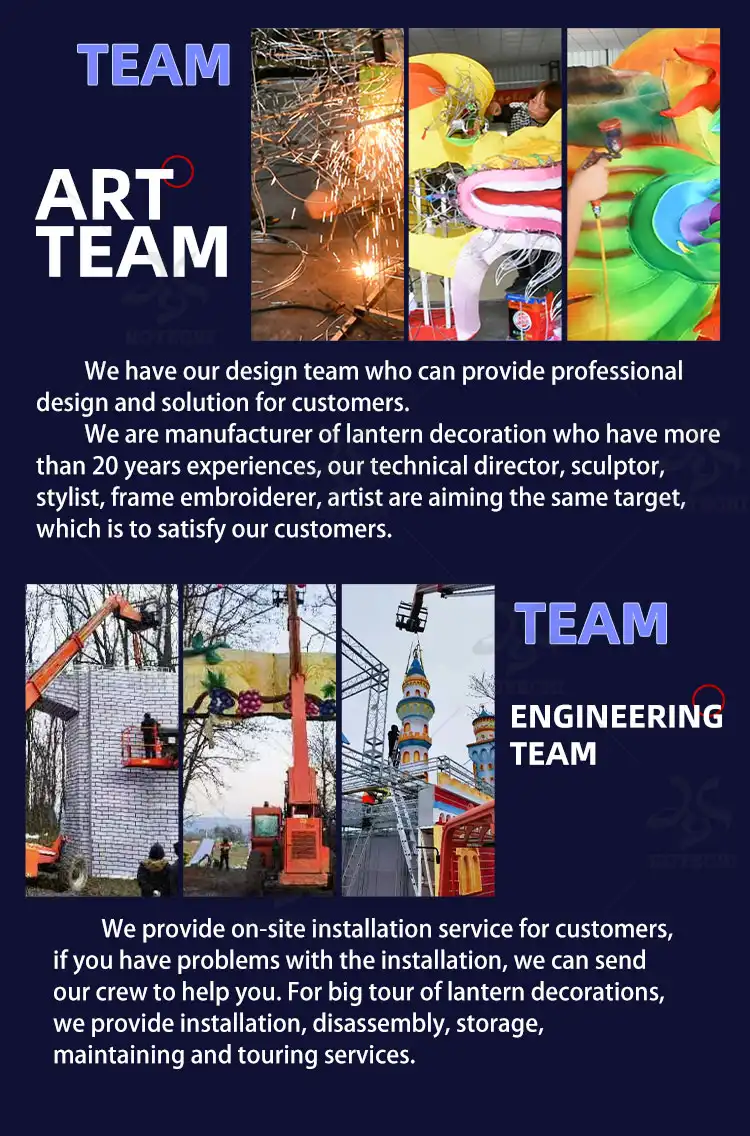 We provide professional installation services to ensure your lanterns are properly set up. Our experienced team will work with you from concept to completion, ensuring a seamless experience. Additionally, we offer ongoing support and maintenance services to ensure the longevity of your displays.