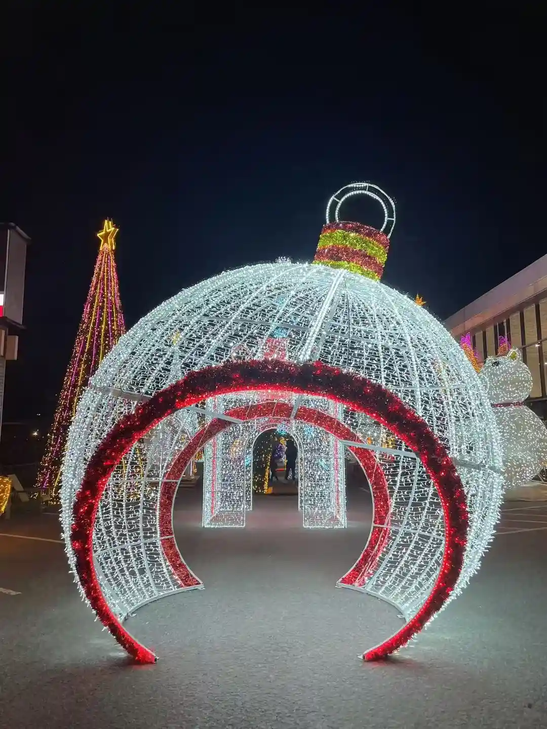 Le second produit est un ornement de Noël plus grand, de type tunnel, avec un design sphérique à 360 degrés. Elle est éclairée par des LED blanc froid, rehaussées de rubans décoratifs rouges autour de l'arche. Lorsqu'elle est éclairée la nuit, la structure crée un tunnel lumineux dans lequel les visiteurs peuvent entrer et qu'ils peuvent explorer.