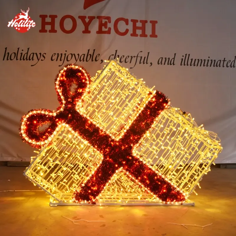 Décoration lumineuse d'une boîte à cadeaux extérieure pour une fête commerciale