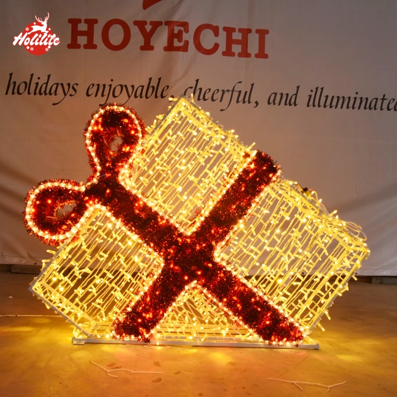 Accueil > PRODUITS > Éclairage de Noël > Décoration lumineuse d'une boîte à cadeaux extérieure pour une fête commerciale