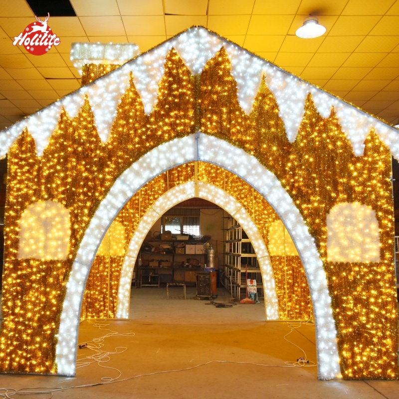 Chez HOLILITE, nous sommes spécialisés dans la création d'étonnantes illuminations de Noël à grande échelle qui apportent de la magie à tout espace commercial ou public. Nos Décor lumineux en forme de maison en pain d'épices est le complément idéal de tout événement de vacances, parc à thème ou place commerciale, offrant un spectacle à couper le souffle qui captive les visiteurs avec son design charmant et ses lumières vibrantes.